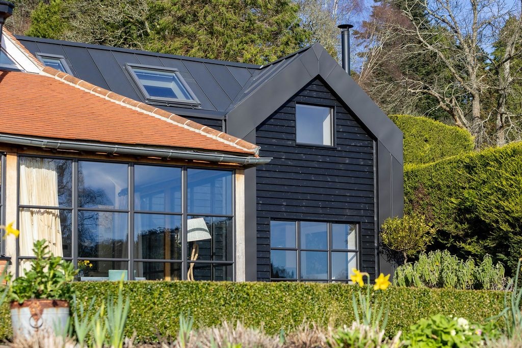 The modern materials contrast beautifully with the original red brick and clay hanging tiles, allowing the history of the property to be clearly expressed through its architecture.