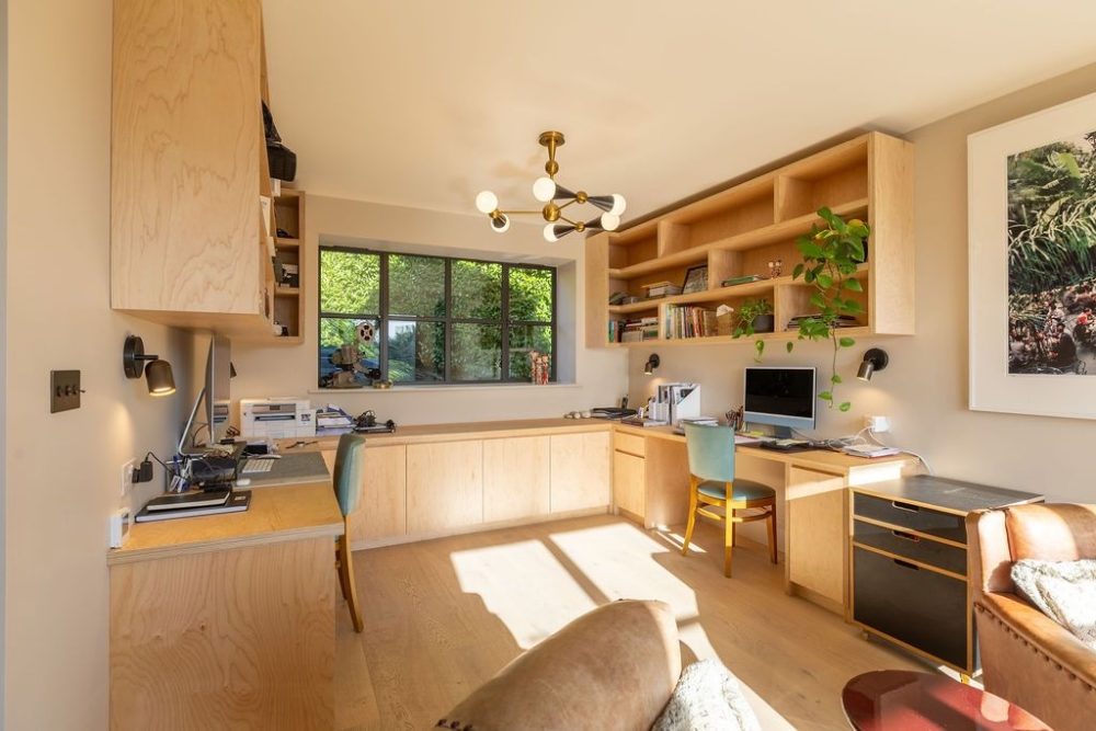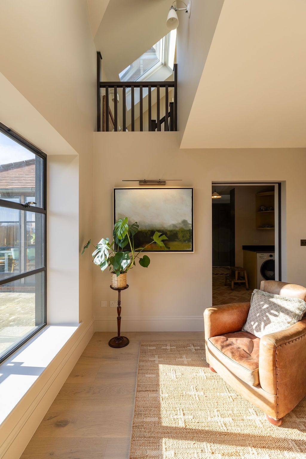 An extension over the garage now accommodates an ensuite guest bedroom, accessed via its own staircase. Dual skylights flood the interior with natural daylight, while an additional skylight set above the staircase draws daylight deep into the plan. A double height void within the extension, set above the ground floor snug, adds a beautiful sense of drama to the interior.